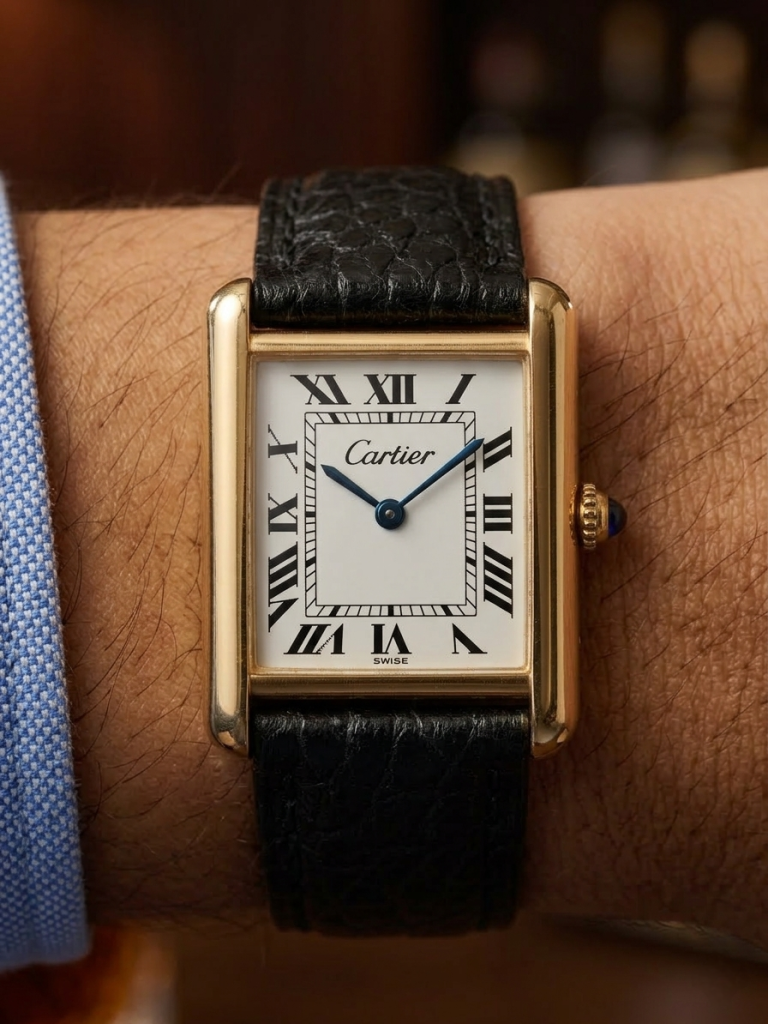 Este no es el Cartier Tank convencional que ves todos los días. Se trata del rarísimo modelo «Stepped Case», caracterizado por su caja con relieves laterales escalonados que añaden una profundidad y presencia arquitectónica única en la muñeca. Con su movimiento de cuerda manual y su esfera impecable con números romanos, es la pieza ideal para el coleccionista que busca la estética clásica de Cartier pero con un detalle distintivo que lo separa del resto. Una joya vintage que personifica el lujo de la era «Pre-Must».