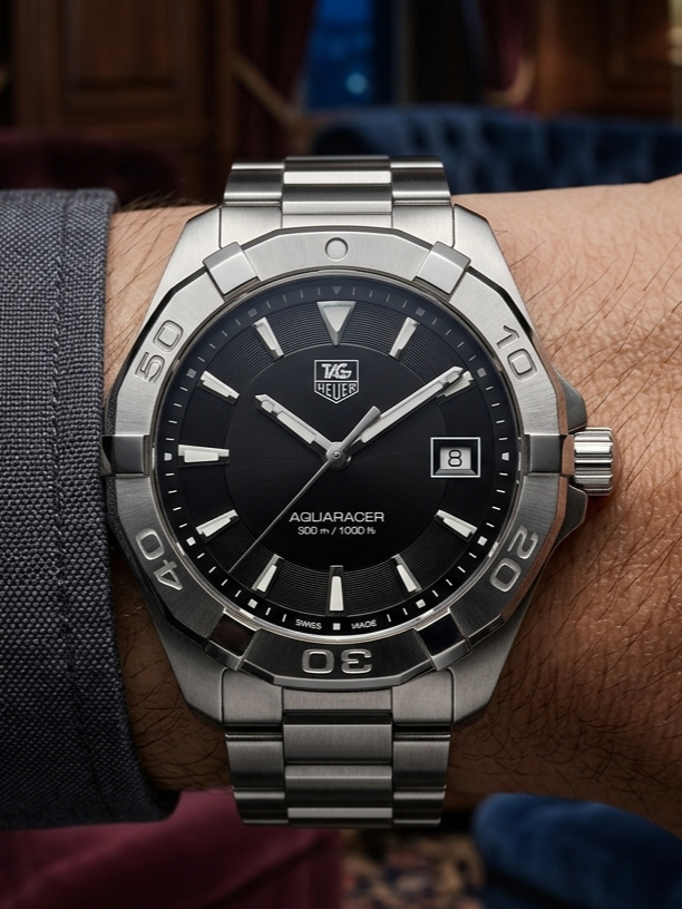 En 2004, la Serie 2000 evolucionó oficialmente al nombre Aquaracer. El modelo que ves en la imagen (Ref. WBD1110) es una interpretación contemporánea de ese legado. A diferencia de las versiones automáticas, este modelo de cuarzo ofrece un perfil más delgado y una resistencia superior a los impactos, manteniendo el bisel dodecagonal icónico que permite un agarre fácil incluso con guantes. Es un reloj que rinde homenaje a la herencia náutica de la marca, manteniendo una estética atemporal que no pasa de moda.