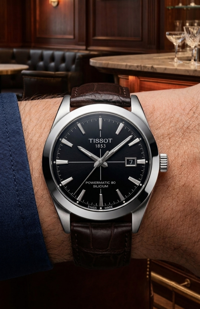 ​El Tissot Gentleman es un reloj automático de 40 mm que redefine la elegancia versátil. Con su esfera negra minimalista y correa de cuero, es la opción perfecta para quienes buscan un reloj suizo de lujo accesible que funcione igual de bien en una reunión de negocios que en una salida casual. Su motor, el Powermatic 80, ofrece una autonomía excepcional de más de tres días.
