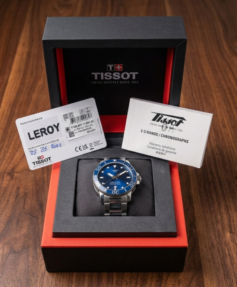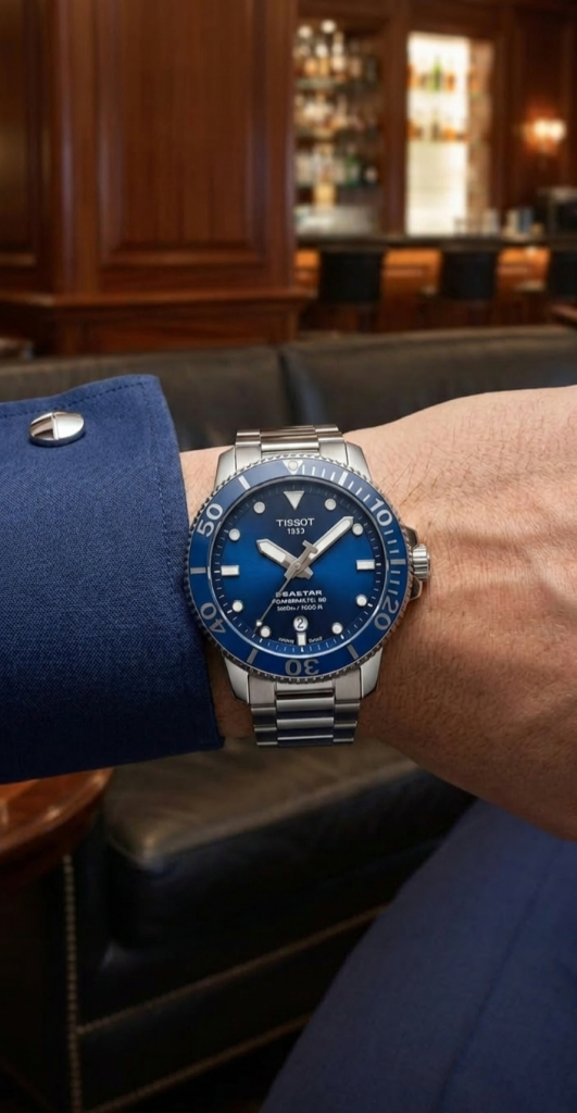 El Tissot Seastar 1000 es mucho más que un reloj de buceo; es una declaración de estilo para el hombre moderno. Con su hipnotizante esfera en degradado azul y su bisel de cerámica de alta tecnología, este reloj combina una resistencia profesional (hasta 300 metros de profundidad) con la sofisticación de un movimiento automático suizo que ofrece 80 horas de reserva de marcha. Es la pieza ideal para quien busca un compañero incansable que luzca igual de bien con un traje de neopreno que con una camisa formal.