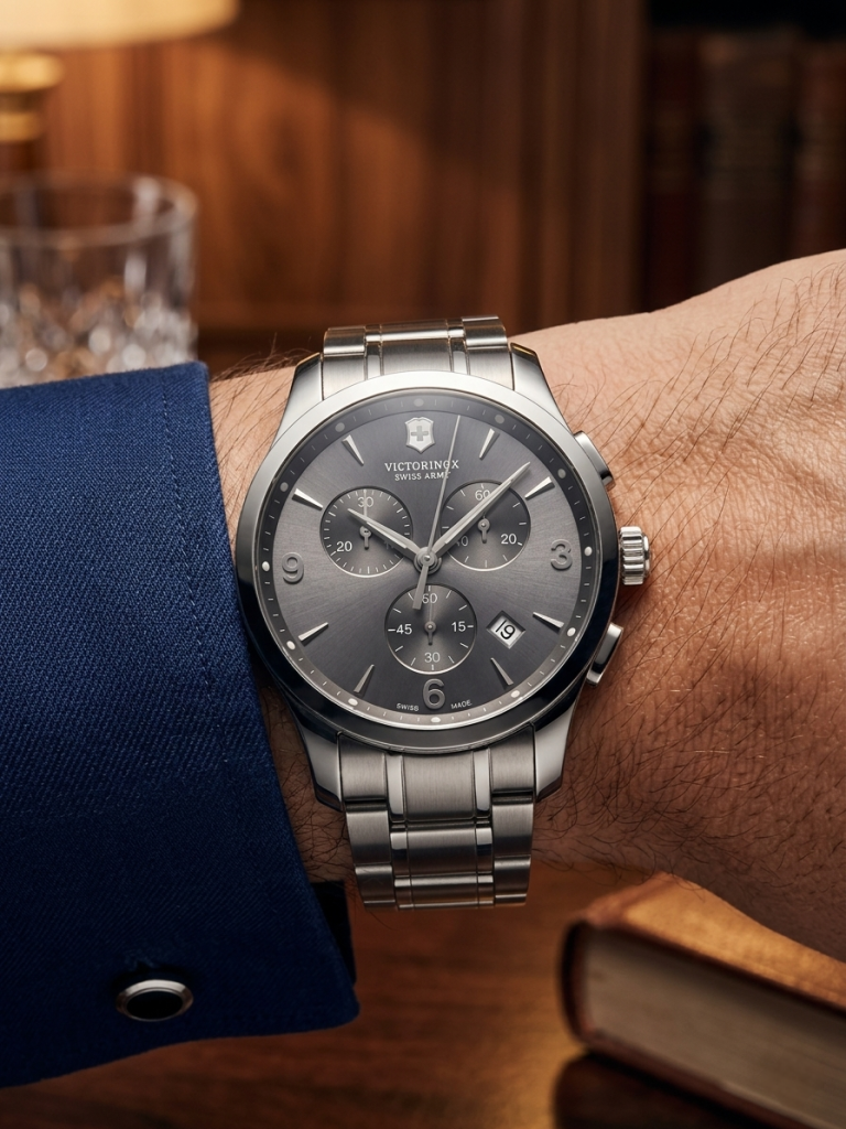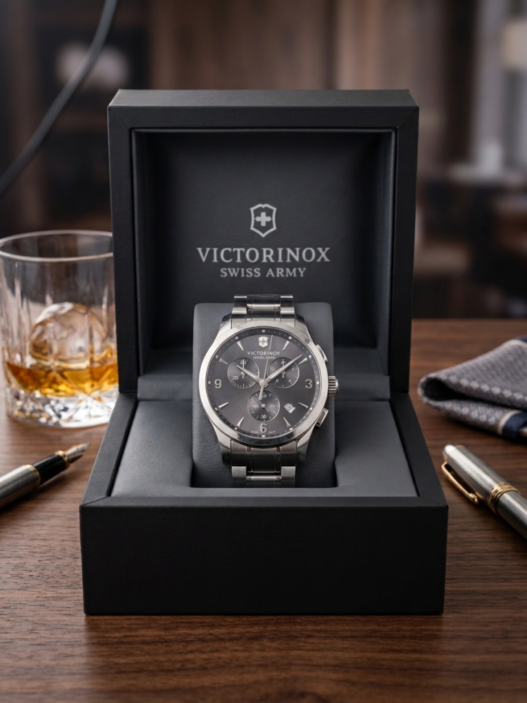 ​El Victorinox Alliance Chronograph es la definición de la versatilidad suiza: un reloj que se siente tan cómodo en una reunión de negocios como en una salida casual de fin de semana. Con una esfera en gris carbón que proyecta una elegancia sobria y subesferas dispuestas con precisión quirúrgica, este cronógrafo no solo mide el tiempo, sino que impone una presencia de confianza y éxito en quien lo porta. Es la pieza ideal para el hombre que busca un diseño atemporal sin sacrificar la resistencia legendaria de Victorinox.